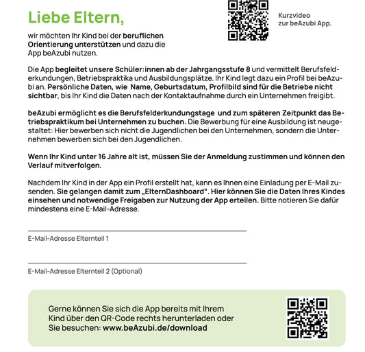 Alle Werbe- und Informationsmittel für Erziehungsberechtigte der Schüler:innen